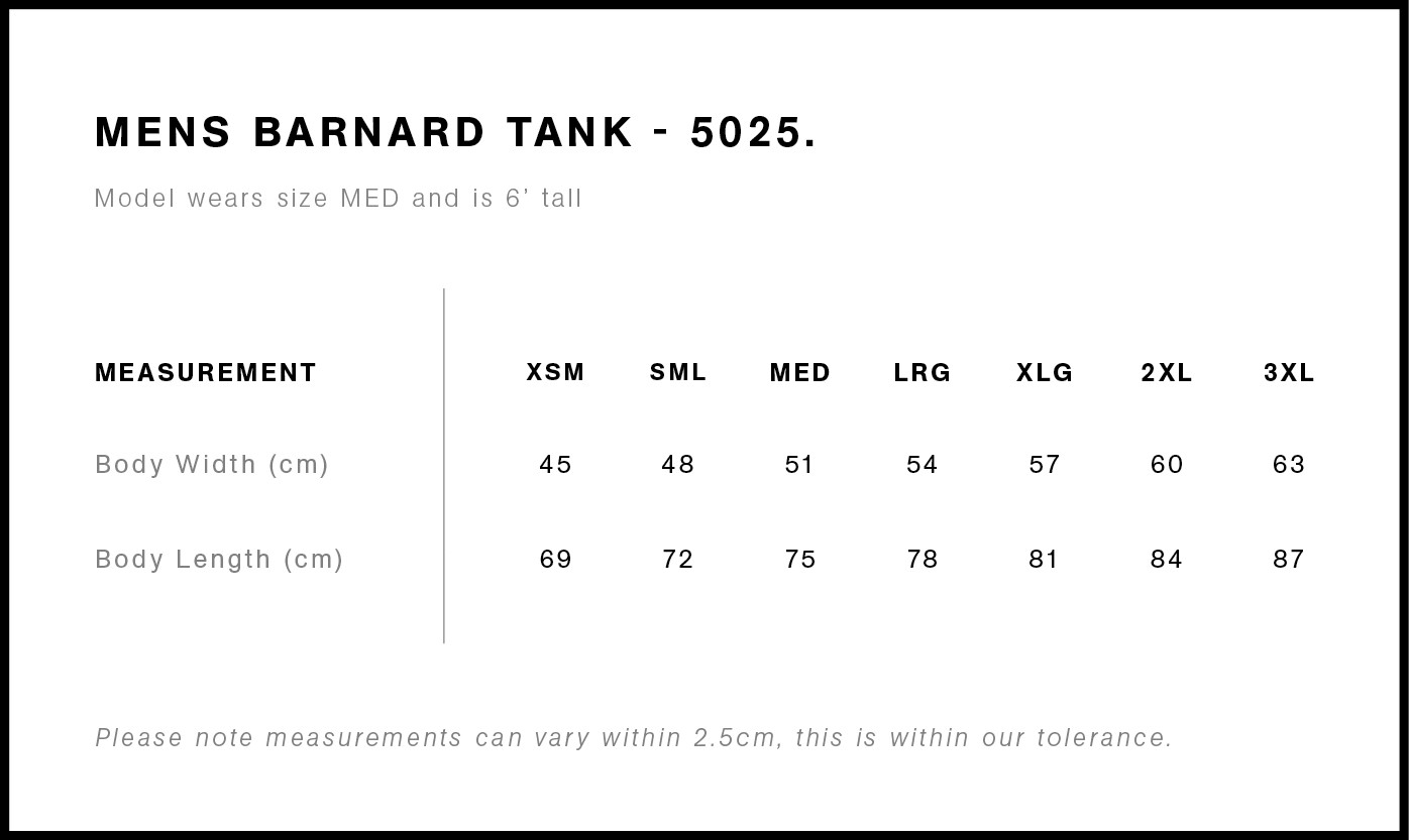 Personalise your own custom tank top by AS Colour. The 'Barnard Tank Tee' is the premium tank top available for custom printing by Tee Junction.